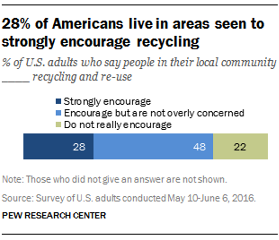 Figure 3. Percent of Americans who report recycling and re-use behaviors in their communities, via Pew Research center