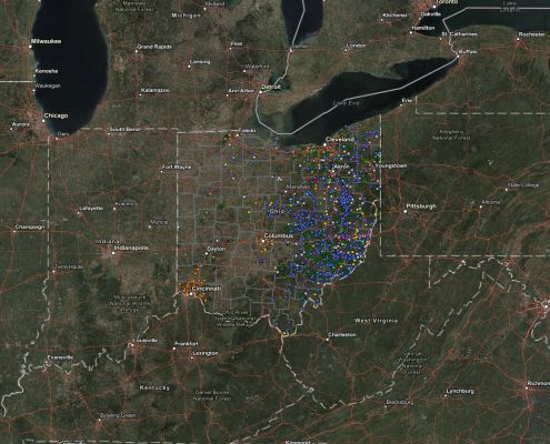 Hydraulically fractured wells account for 2.3% of oil and gas production in Ohio. Most oil and gas drilling takes place in the Marcellus and Utica Shale region.
