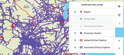 Learn how oil and gas development is impacting communities across the United States and browse user-generated submissions. You can customize the map by selecting which types of development you’d like to show (wells, pipelines, compressor stations, and processing stations) and what types of user reports appear (noise complaints, smells, etc.).