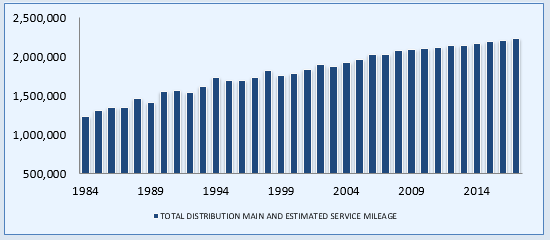 - 1.3 million miles of natural gas distribution lines (which take gas from public utilities to consumers)