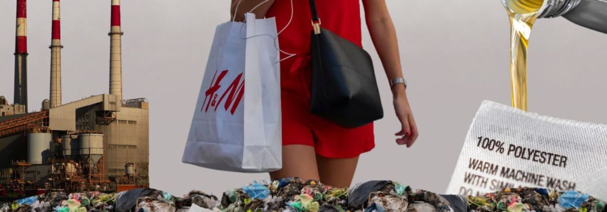 Fast fashion relies heavily on synthetic materials and nonrenewable energy sources, leaving behind significant environmental footprints and often involving unethical labor practices.