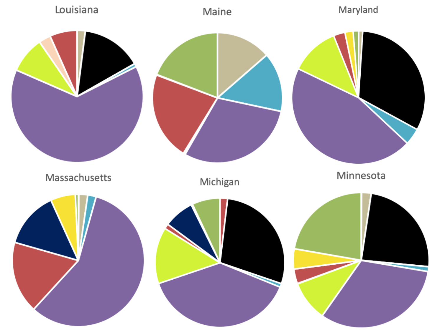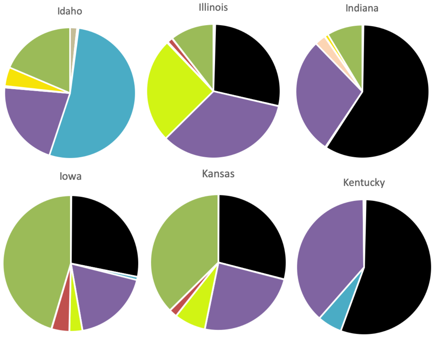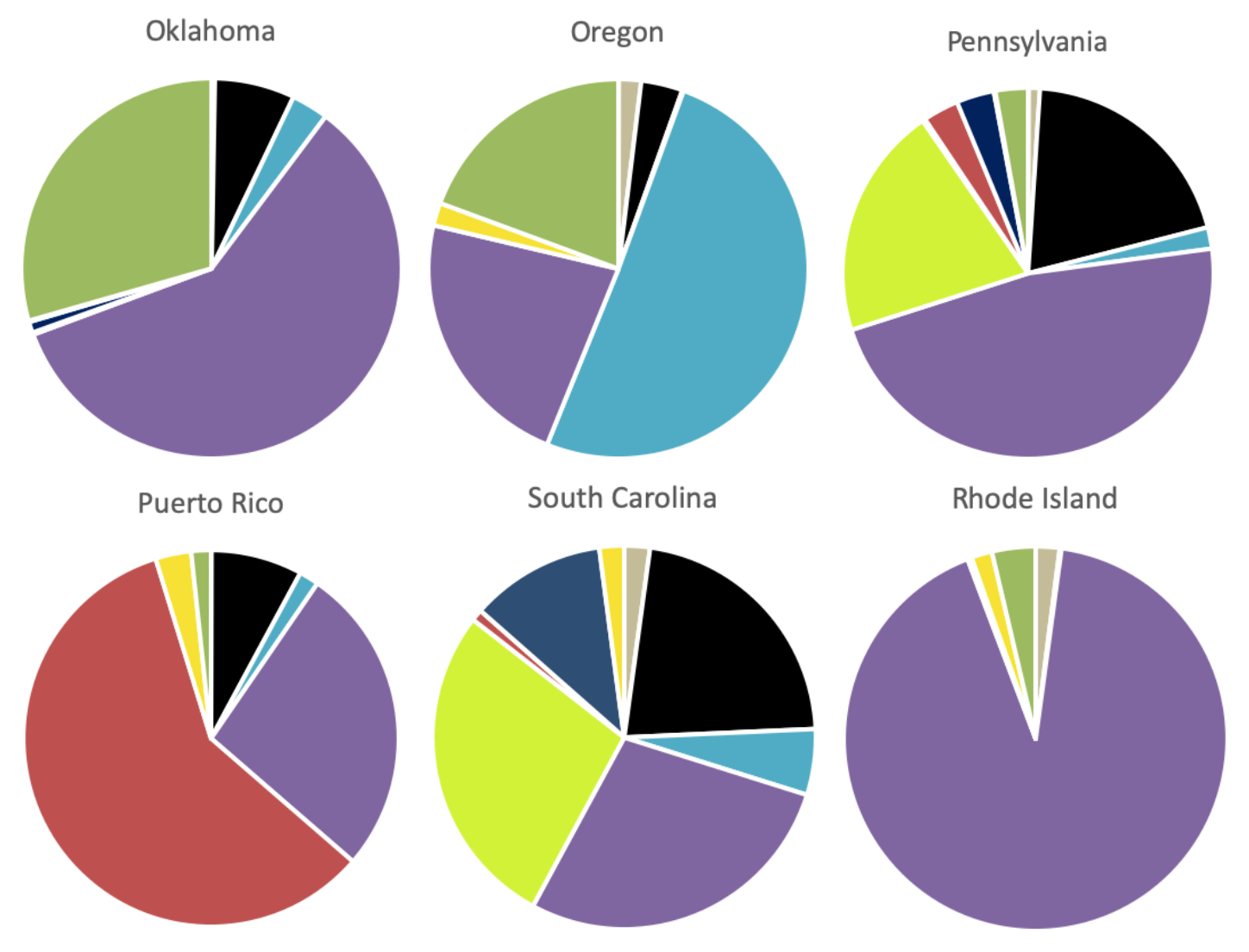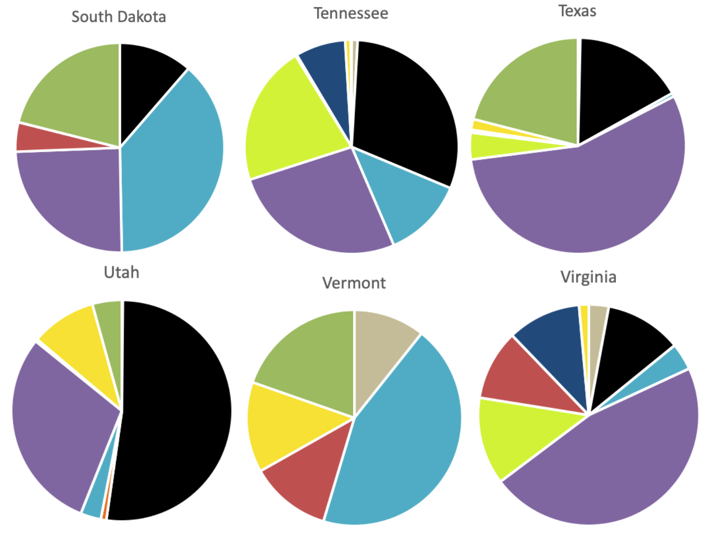 One final factor to consider – the pie pieces on these state charts aren’t weighted equally, with some states’ capacity to generate electricity far greater than others. The top five electricity producers are Texas, California, Florida, Pennsylvania, and Illinois.