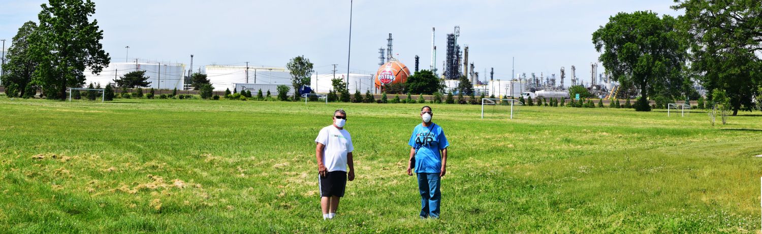 Theresa Landrum and Doug Wood, two environmental justice advocates, stand in front of Marathon Oil’s Refinery in Detroit, Michigan. This facility will not be impacted by the EPA’s updated regulations, but it could supply oil to chemical manufacturers that are. Ted Auch, FracTracker Alliance, 2020.
