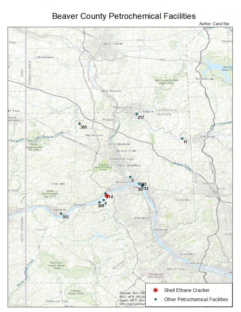 Figure 1. All petrochemical facilities in Beaver County, Pennsylvania