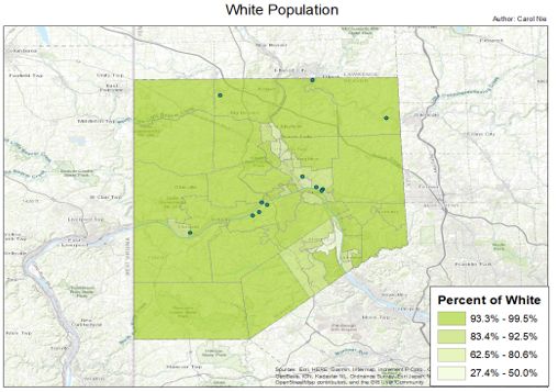 Figure 7. Percentage of white population in Beaver County, Pennsylvania, by census tract. Source: US Census Bureau