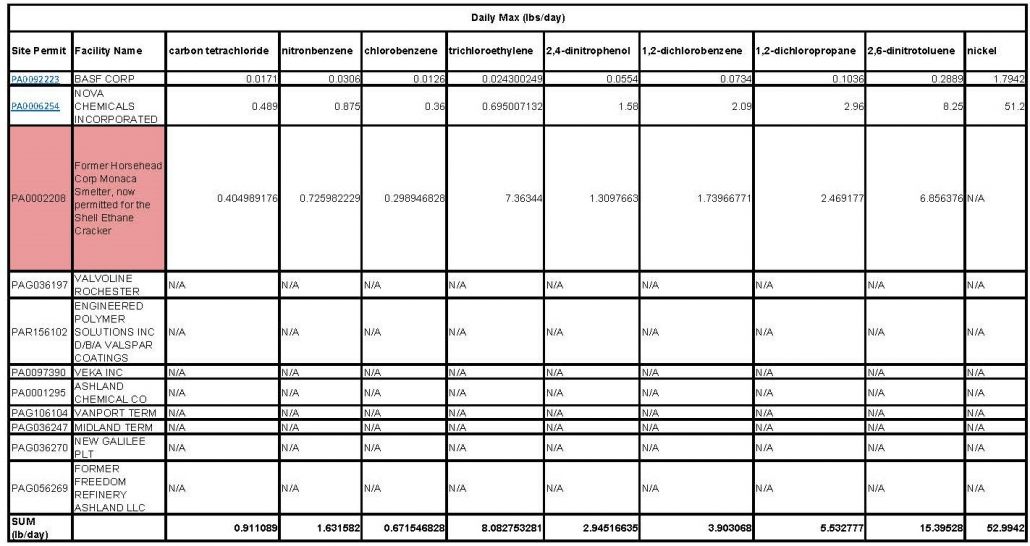 In summary, petrochemical facilities in Beaver County are discharging many concerning chemicals that can increase cancer risk and many other health issues into the Ohio River. The Shell ethane cracker will only make things worse when it is finished.
