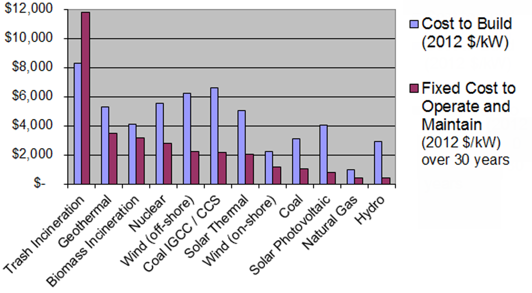 Figure 13. Estimated power plant capital and operating costs. Source: Energy Justice Network