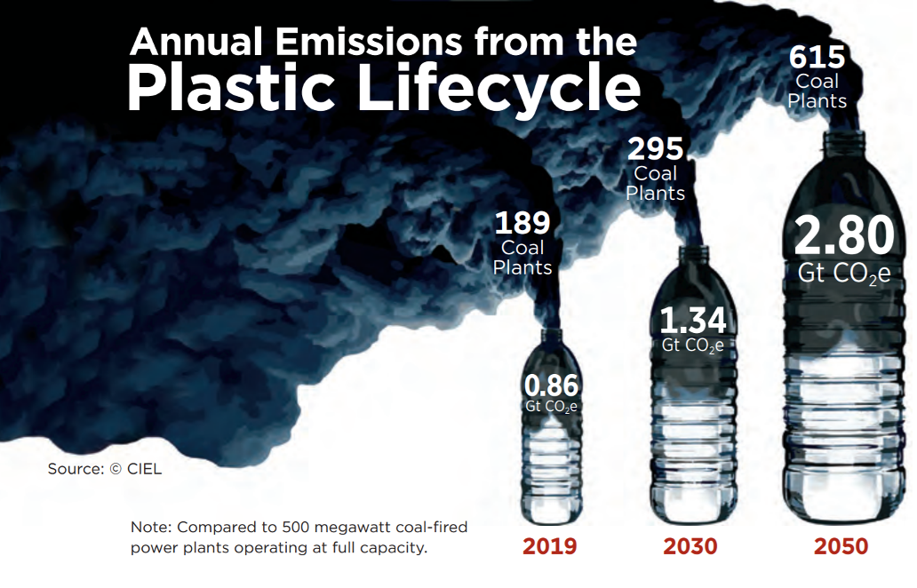 Figure 5: Projected carbon dioxide equivalencies in plastics emissions, 2019-2050. Source: Plastic and Climate https://www.ciel.org/plasticandclimate/