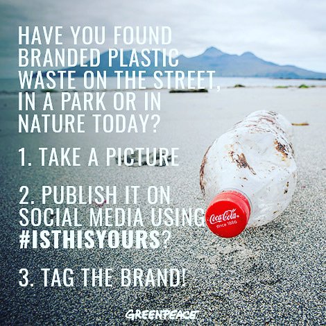 Through the Story of Stuff’s #Messageinabottle project and Greenpeace’s #Isthisyours campaign, we’re also encouraging corporations to reimagine how the package and transport products.