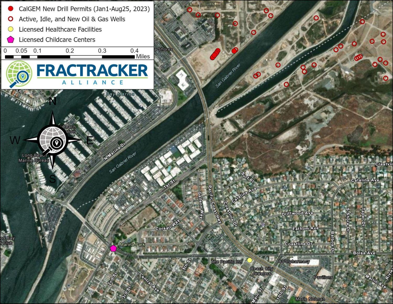 New well drilling permits approved by Geologic Energy Management Division (CalGEM) in Long Beach, California, are within 3,200 feet of many homes, a healthcare facility, and a childcare center.