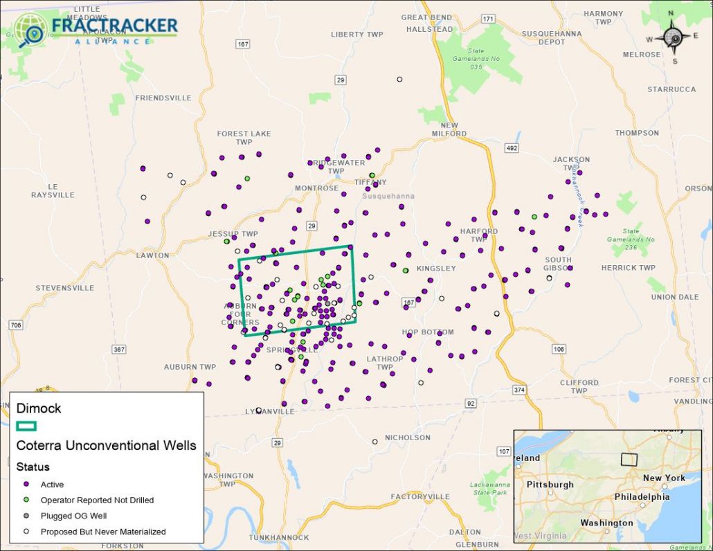 Figure 2) Unconventional oil and gas wells operated by Coterra. Data Source: PA DEP, downloaded March 2022.