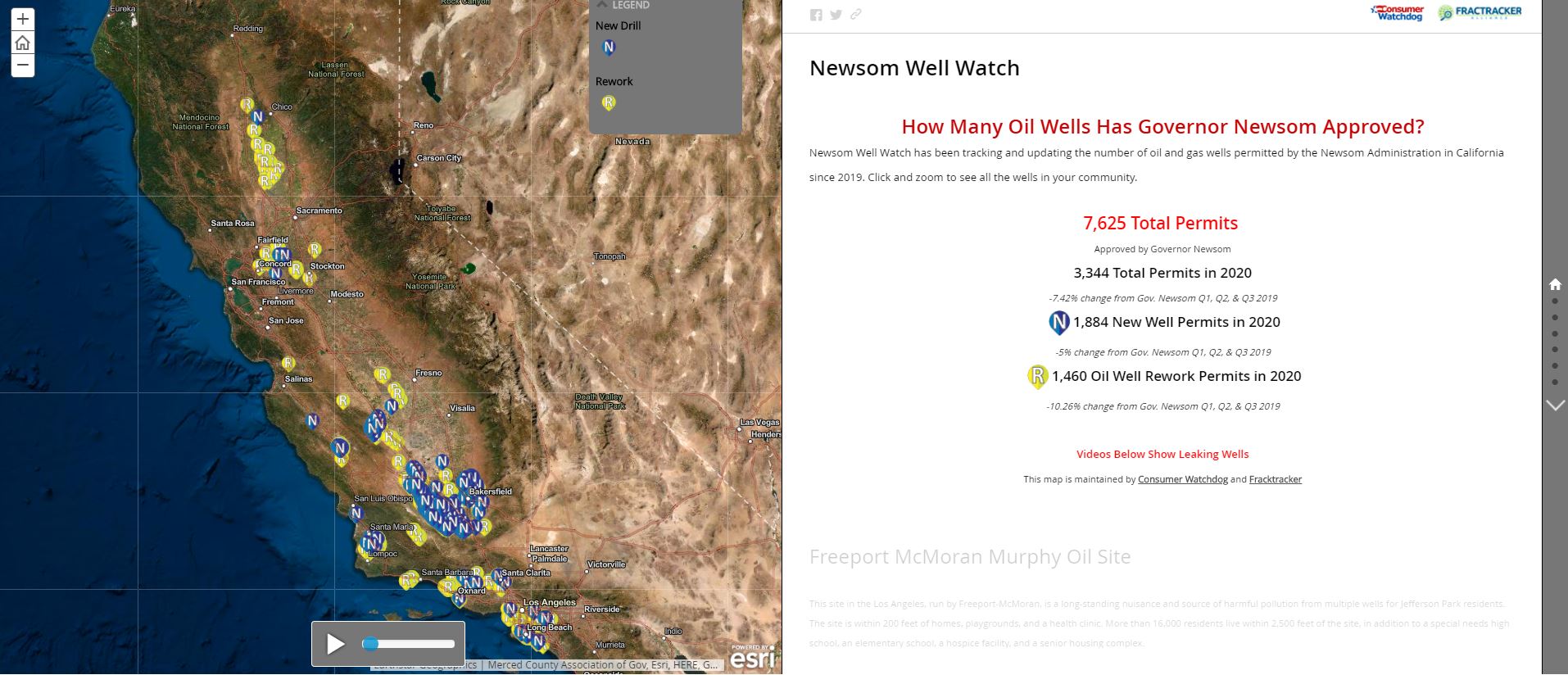In collaboration with Consumer Watchdog, FracTracker Alliance has been periodically reporting on the number and locations of oil and gas wells permitted by Governor Newsom in California. In July of 2019, we showed how the rate of fracking under Governor Newsom had doubled, as compared to counts under former Governor Brown. Since then we have continued tracking the numbers and updating the California public via multiple news stories, blog reports, and with a map of new permits on NewsomWellWatch.com, where permitting data for the third quarter of 2020 has just been posted.