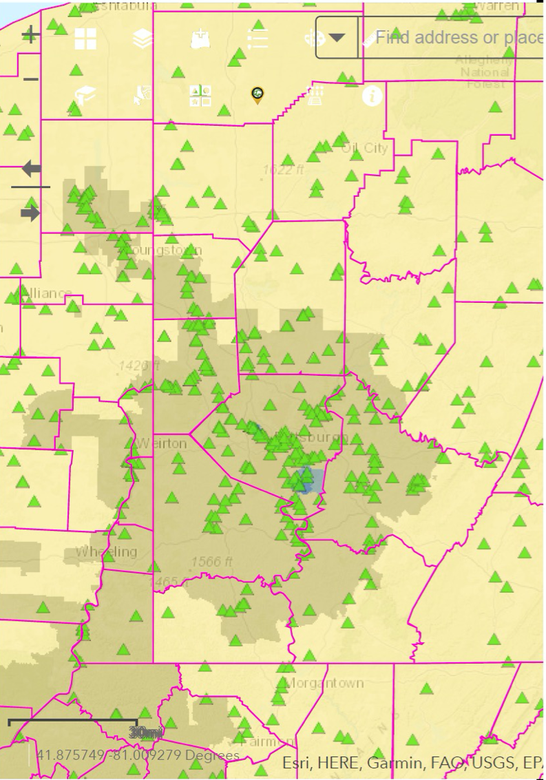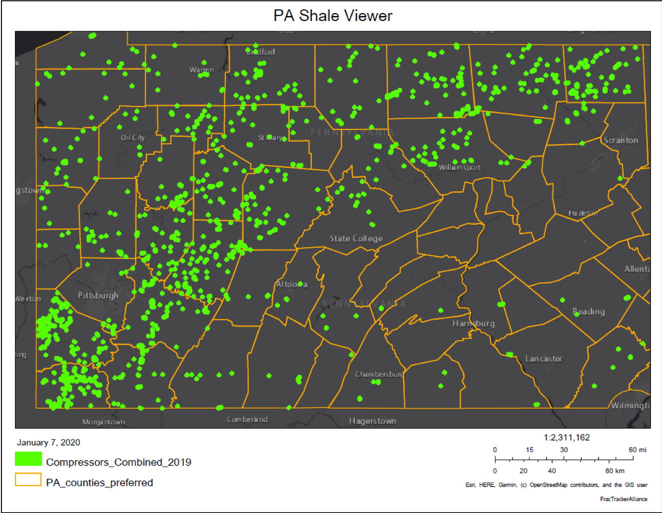 Figure 6. Compressor Stations in Pennsylvania mapped in 2019. Source: FracTracker Alliance. 2000.