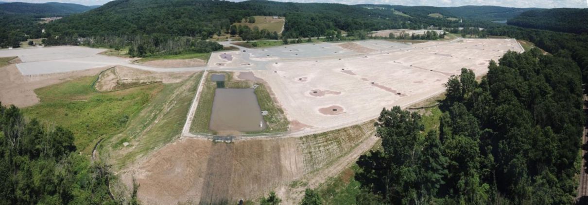 Figure 2. Aerial view of site preparation work at the New Fortress LNG plant site. Source: Ted Auch, FracTracker Alliance
