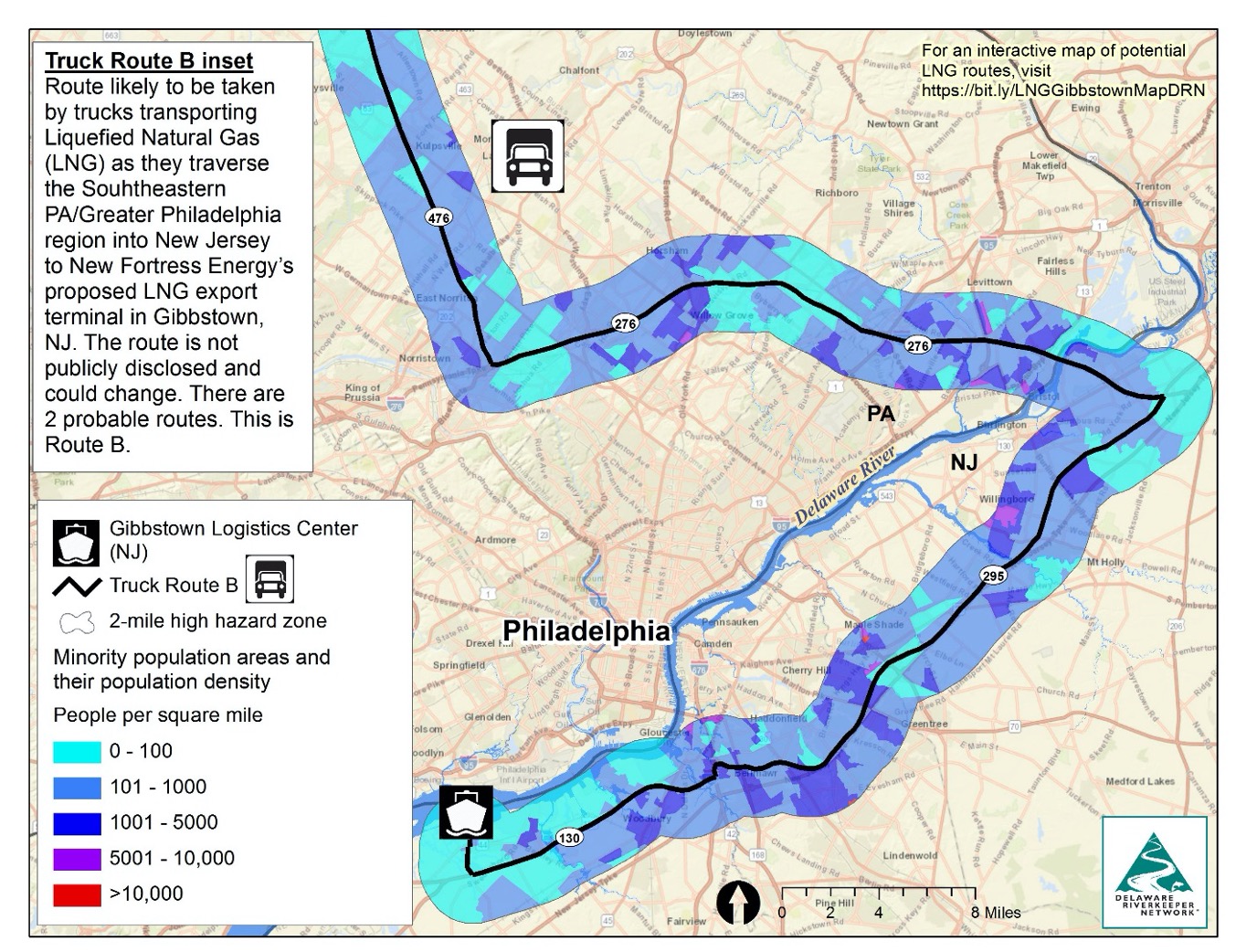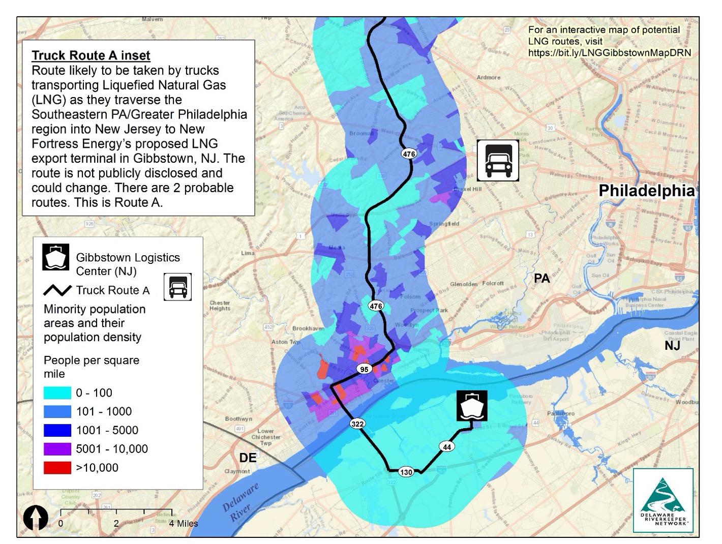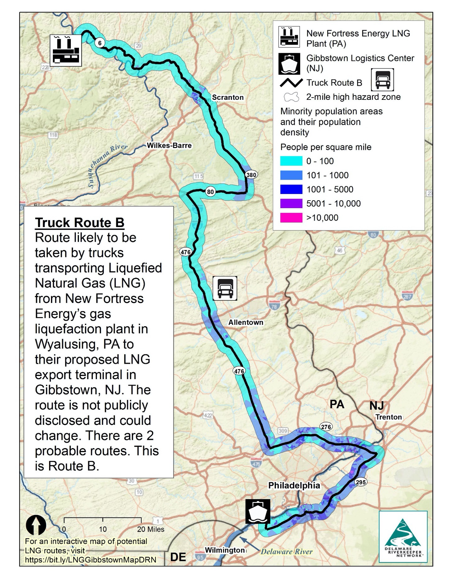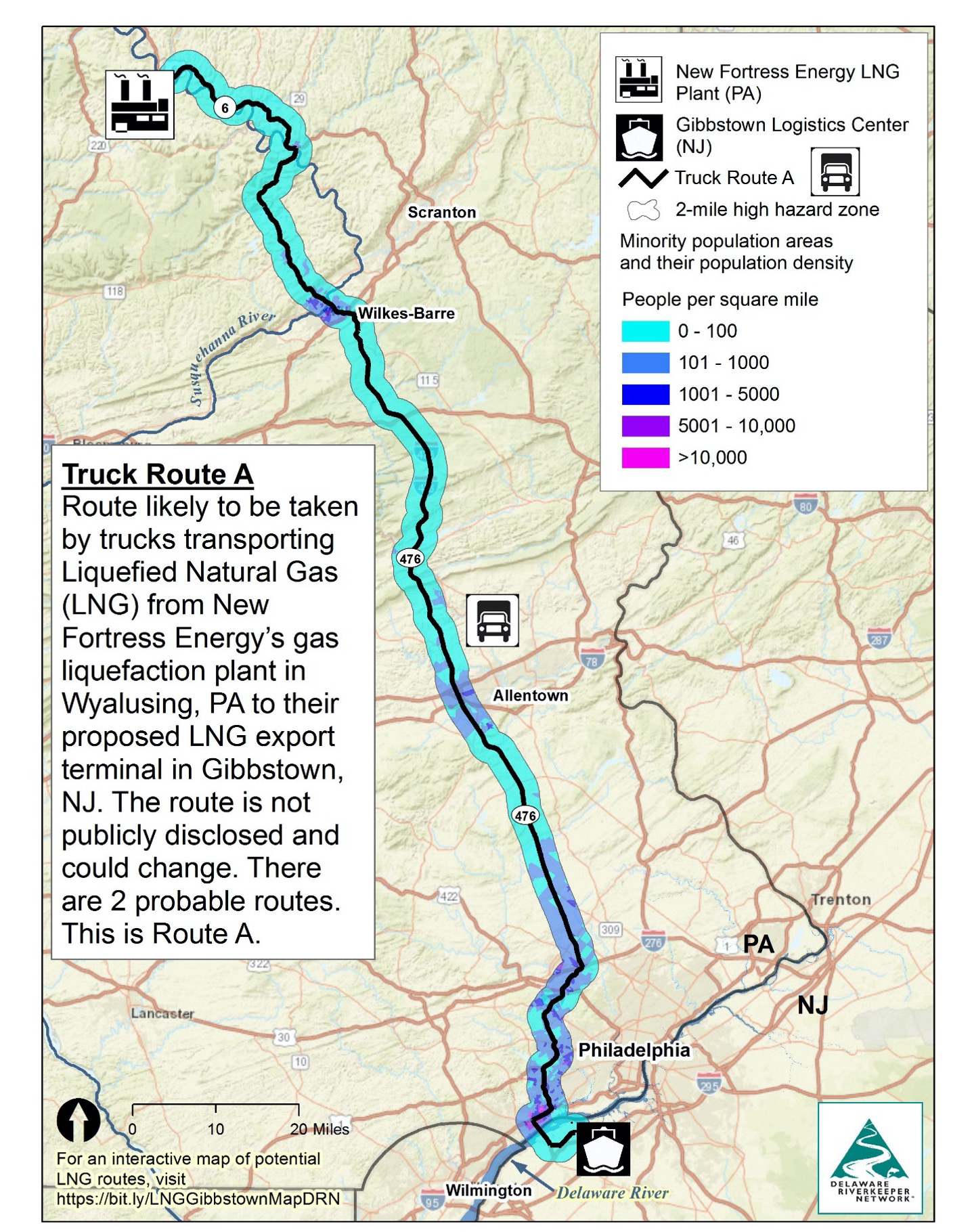 In collaboration with Delaware Riverkeeper Network (DRN), FracTracker looked at potential overland routes for how the LNG produced in Wyalusing would reach the nearest export terminal in Gibbstown, New Jersey, a distance of 200 or more miles away.