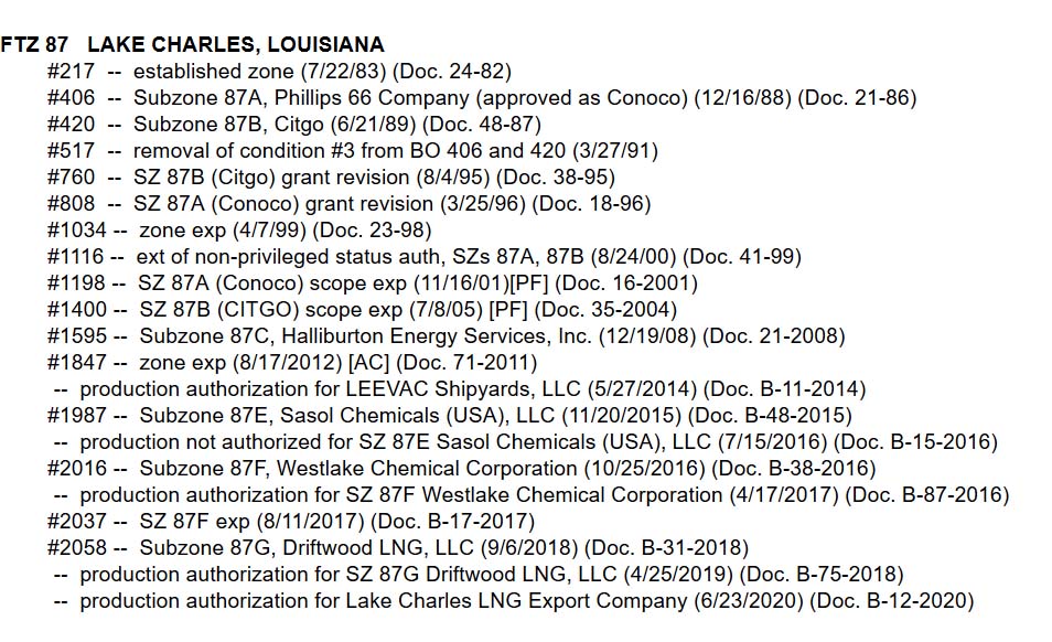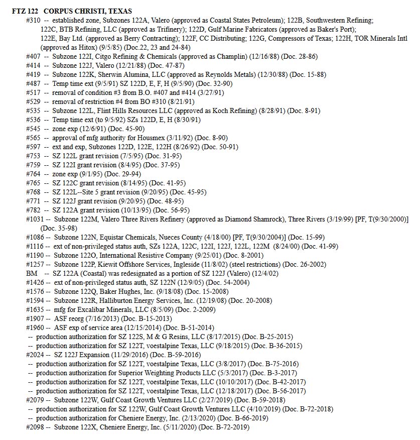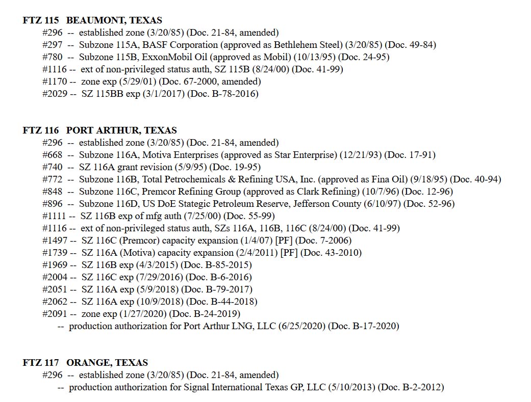 Figure 2. Foreign-Trade Zone (FTZ) Board of Actions in Zones 87 in Lake Charles, LA, 115-117 in and around Port Arthur, TX, and 122 in Corpus Christi, TX. (click on the images to enlarge)
