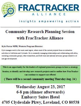 For more information about these community meetings in Colorado, please contact Kyle Ferrar at ferrar@fractracker.org.
