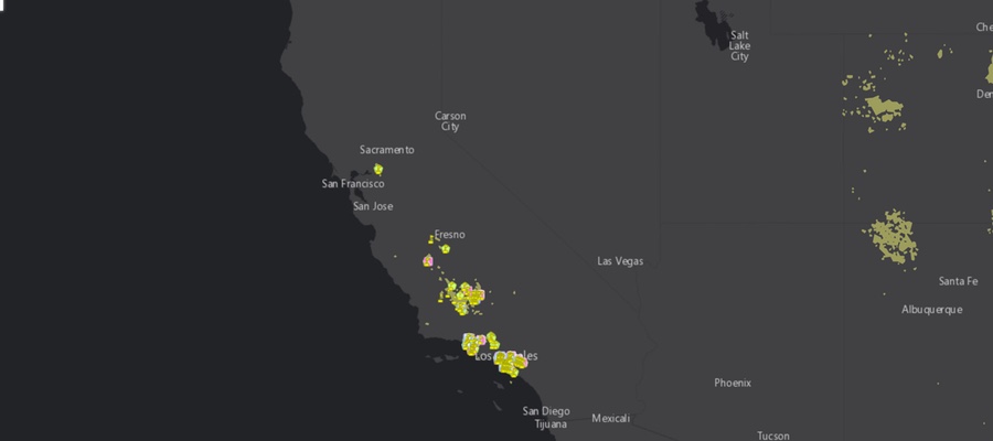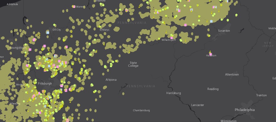 FracTracker Alliance has been working with the Frontier Group and Environment America on a nationwide assessment of “fracked” oil and gas wells. The report is titled Dangerous and Close, Fracking Puts the Nation’s Most Vulnerable People at Risk. The assessment analyzed the locations of fracked wells and identified where the fracking has occurred near locations where sensitive populations are commonly located. These sensitive sites include schools and daycare facilities because they house children, hospitals because the sick are not able to fight off pollution as effectively, and nursing homes where the elderly need and deserve clean environments so that they can be healthy, as well. The analysis used data on fracked wells from regulatory agencies and FracFocus in nine states. Maps of these nine states, as well as a full national map are shown below.