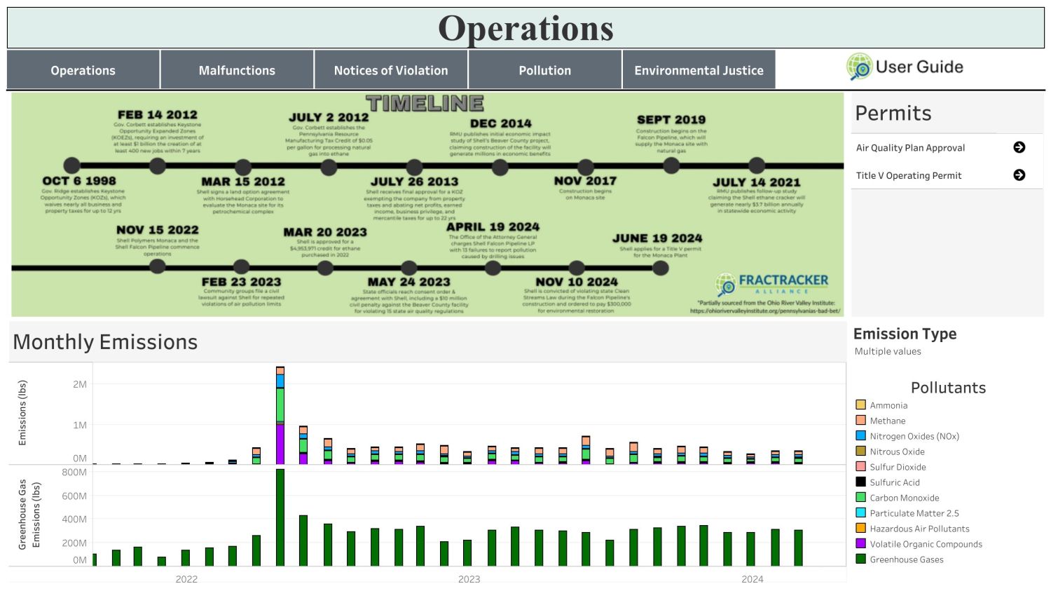 View FracTracker’s Shell Polymers Monaca interactive data dashboard on Tableau Public.