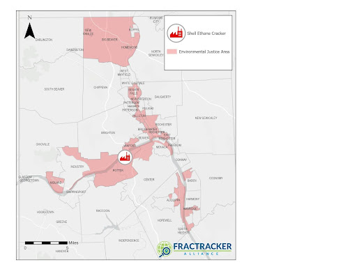 Shell Polymers Monaca contributes to the pollution burden in already overburdened communities including the environmental justice communities of Aliquippa, Ambridge, Baden, Beaver Falls, Bridgewater, Center Township, East Rochester, Industry/Merrill, Leetsdale, Midland, Monaca, New Brighton, Potter Township, Rochester, and Vanport.