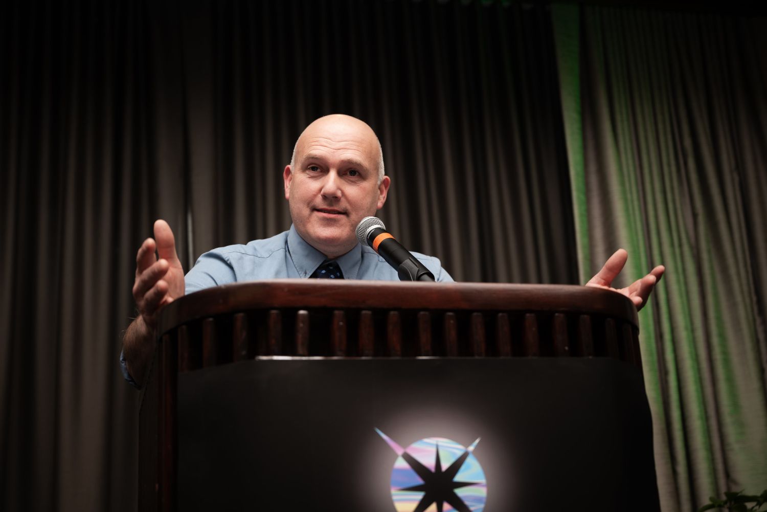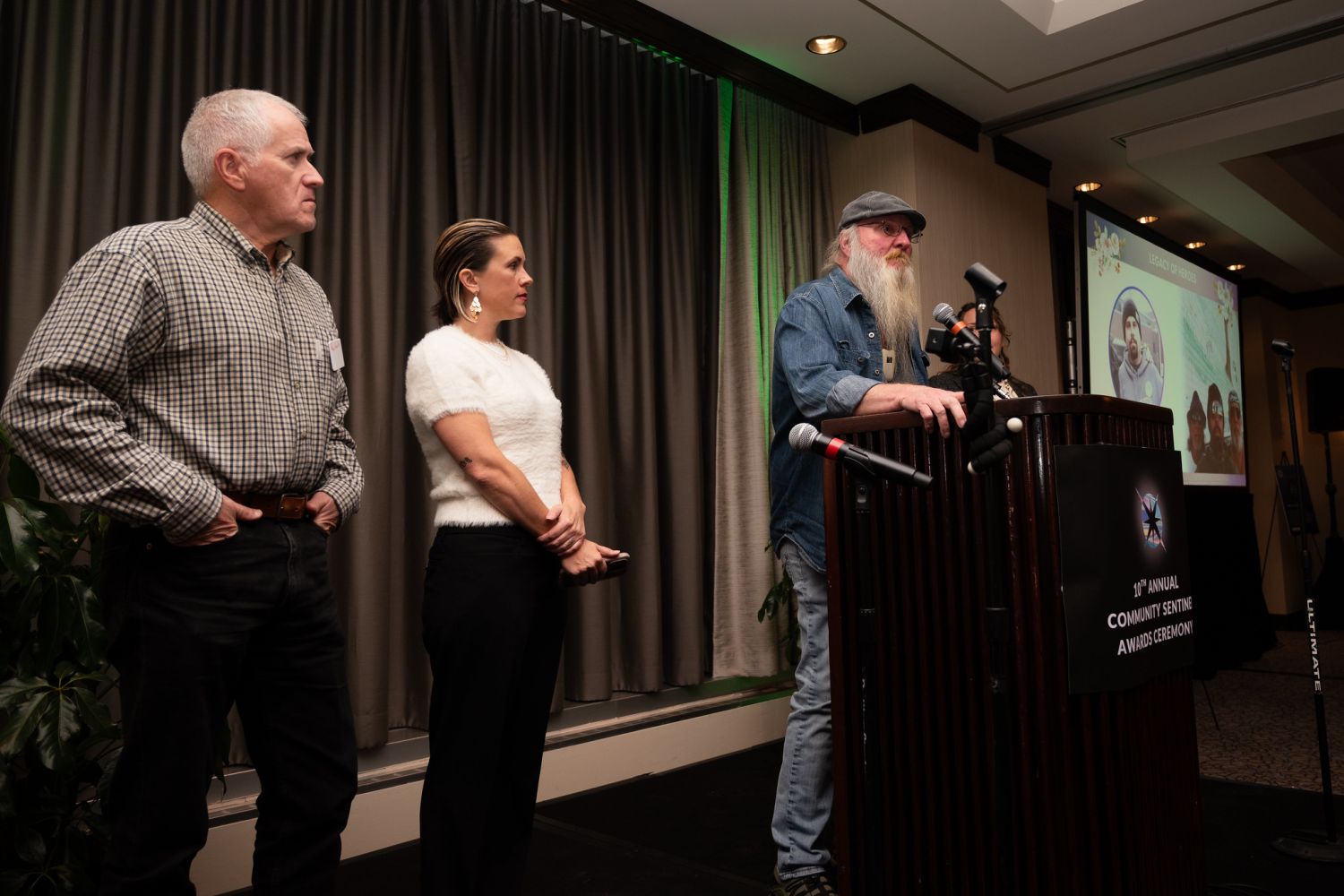 Eddie Mitchell speaking at the 2024 FracTracker Community Sentinel Awards. (Photo Credit: Sarah Carballo, FracTracker Alliance, 2024)