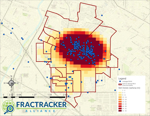 While previous analyses of California have provided statewide estimations of demographics for those living closest to and most impacted by oil and gas extraction, this work takes a more community focused and intersectional approach to first define the communities most impacted, and then focus on multiple indicators of disparity in addition to race and ethnicity, such as socioeconomic status, educational attainment, age, and exposure to other pollution sources. This approach locates the environmental justice impacts of oil and gas extraction within existing, compounding frameworks of inequity. Additionally, we utilized a more comprehensive estimate of risk from exposure to oil and gas extraction by accounting for well density rather than solely proximity, and then locate the environmental justice impacts of oil and gas extraction within existing, compounding frameworks of inequity.